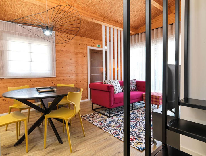Os quartos foram desenhados como espaços de descanso, com iluminação cuidada e uma paleta cromática suave que favorece o relaxamento. As áreas comuns foram organizadas de forma fluida, otimizando a circulação e promovendo a convivência, sem perder funcionalidade.
