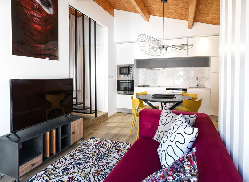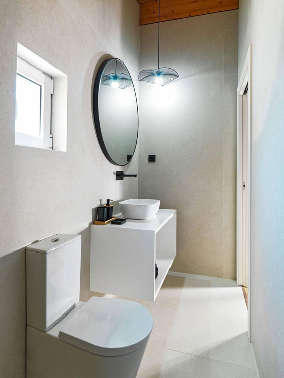 O mobiliário foi escolhido com foco na durabilidade, na simplicidade das linhas e na adaptação ao uso diário de um alojamento local. Os têxteis personalizados reforçam o conforto e contribuem para uma experiência mais acolhedora, mantendo uma linguagem visual consistente em toda a casa.