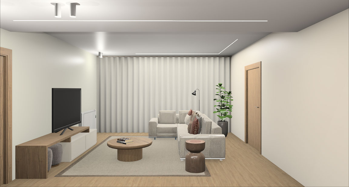 Este projeto consistiu na alteração e decoração da sala de estar de uma habitação familiar, com o objetivo de tornar o espaço mais confortável, funcional e acolhedor para o dia a dia.